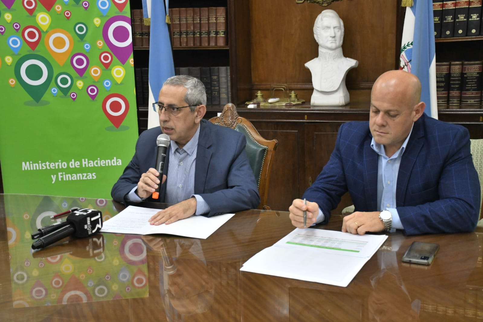 En la rueda de prensa, el ministro Marcelo Rivas Piasentini estuvo acompañado por el subsecretario de Finanzas, Héctor Grachot.
