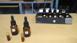 Con asistencia del personal del Grupo de Criminalística y Estudios Forenses de la Unidad, se realizó la prueba de campo narcotest en muestras del contenido líquido de los frascos, arrojando como resultado cromáticamente positivo para Cannabis sativa.