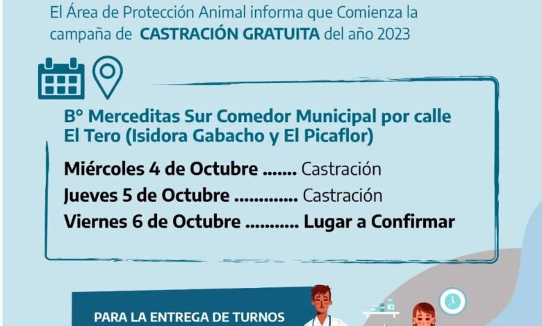 El Área de Protección Animal Municipal informa el cronograma de castración gratuita para perros y gatos para este mes de octubre.