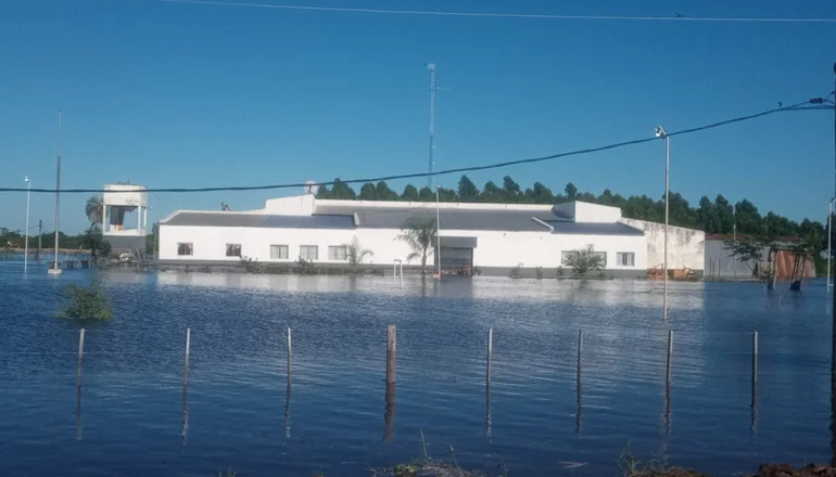 La Escuela de la Familia Agrícola Peju Pora quedó totalmente inundada tras ceder sus defensas producto de las abundantes lluvias de los últimos días.
