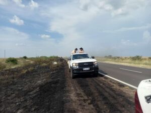 Bomberos Voluntarios de Mercedes tuvieron un duro combate contra el fuego durante la jornada del domingo, cuando se registraron tres focos de incendios en el rango de un kilómetro. El voraz incendio alcanzó a un matorral en los kilómetros 102 y 103 de la ruta nacional119.