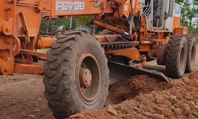 Las tareas que se están llevando a cabo incluyen Elevación de la calzada, Carga de material y compactado, Perfilado del suelo y Canalización con zanjeo y entubado.