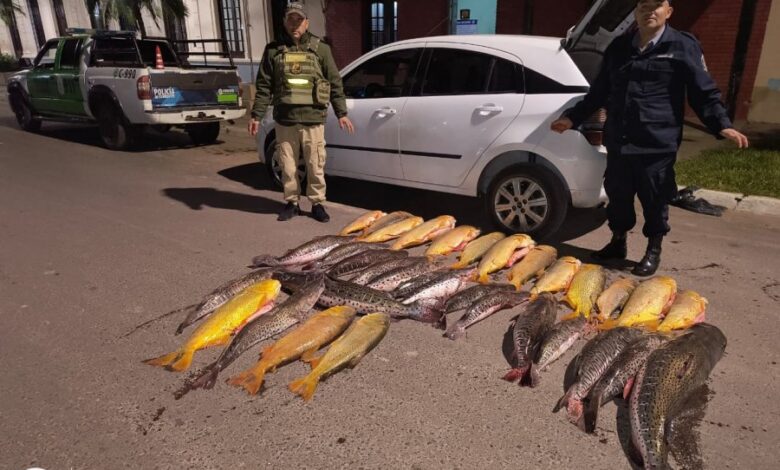 En la oportunidad, los efectivos detuvieron la marcha de un vehículo automotor –Chevrolet Agile- el cual tenía como ocupantes a dos hombres de 34 y 51 años de edad; a quien le solicitaron que exhiba el interior del rodado, lo que permitió observar gran cantidad de dorados y surubíes de diferentes tamaños, de los cuales no supieron justificar su procedencia y/o destino.