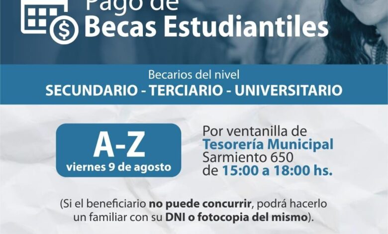 Pago de Becas Estudiantiles del Concejo Deliberante El Presidente del Concejo, Roberto ‘Caly’ Sánchez, informa el pago de becas: