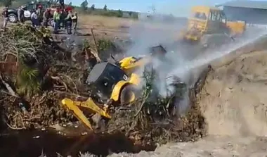 Un maquinista, empleado municipal de Paso de la Patria, salvó su vida de milagro luego de caer junto con la retroexcavadora con la que empujaba un montículo de basura dentro de la fosa en donde se realizaba la quema. Pudo ser rescatado ileso y bomberos debieron acudir para apagar las llamas que por poco terminan alcanzándolo.
