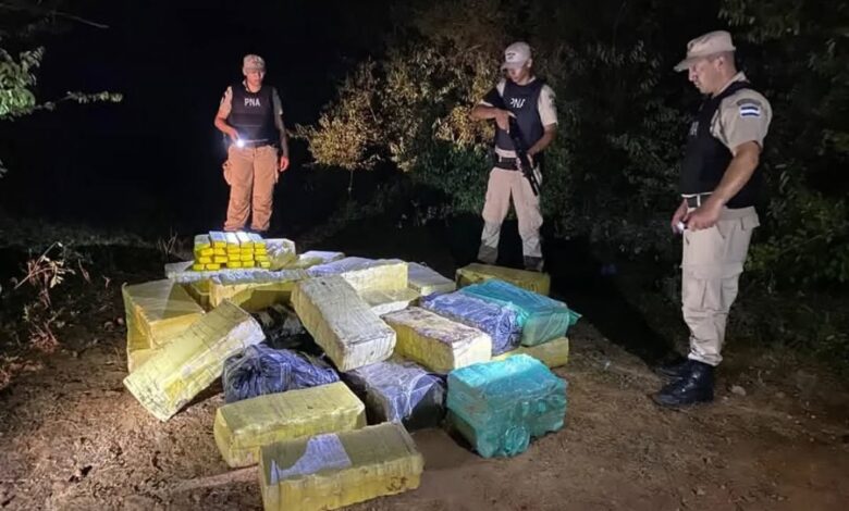 Tras un intenso rastrillaje, se hallaron entre la vegetación 37 bultos con paquetes rectangulares.