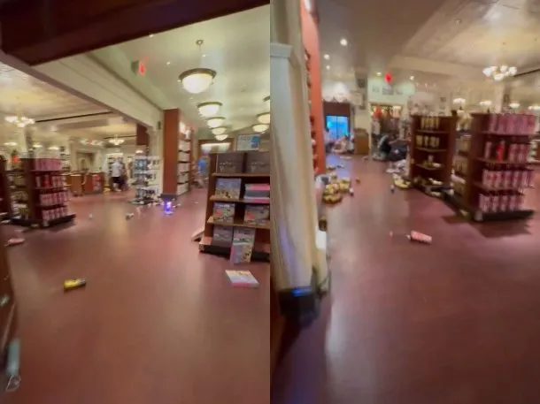 Varios videos sobre el momento, corriendo en Disney, aparecieron en las redes sociales. Un video mostraba objetos esparcidos en el suelo de una de las tiendas de Main Street USA.
