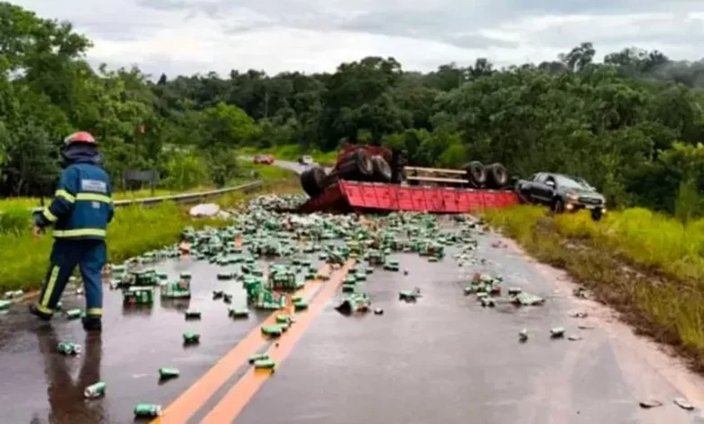 Las autoridades policiales informaron que el vehículo involucrado, un camión marca Volvo 370, circulaba durante la tarde lluviosa entre San Antonio y Andresito con un cargamento de cerveza Heineken.