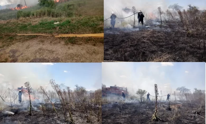 Voraz incendio de campos y pastizales en el acceso sur de Goya