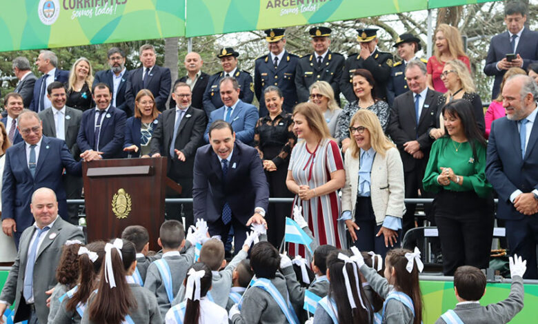 En el marco del 204° aniversario del Paso a la Inmortalidad del General Manuel Belgrano, el gobernador de la provincia, Gustavo Valdés, encabezó este jueves el acto de Promesa a la Bandera argentina a 1.800 alumnos de cuarto grado, pertenecientes una veintena de establecimientos educativos de la ciudad de Corrientes. En la oportunidad, el mandatario sostuvo que “dimos un paso más en la libertad de nuestro pueblo”, en la antesala del desfile escolar desplegado sobre Costanera Juan Pablo II.