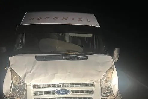 Un vehículo utilitario marca Ford Tránsit sufrió daños importante luego de haber atropellado a un búfalo suelto sobre la ruta provincial 5. Afortunadamente, los dos ocupantes del vehículo resultaron ilesos.