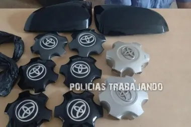 Al ser identificados, no supieron justificar su presencia ni acreditar claramente sus datos. El nerviosismo los delató. Llevaban una bolsa negra con elementos de dudosa procedencia: centros de llantas y una carcasa de espejo, piezas típicamente apuntadas en robos a camionetas, especialmente de marca Toyota.